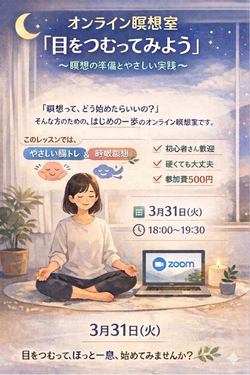 そんな方のための、超・入門「オンライン瞑想室」を開催します✨